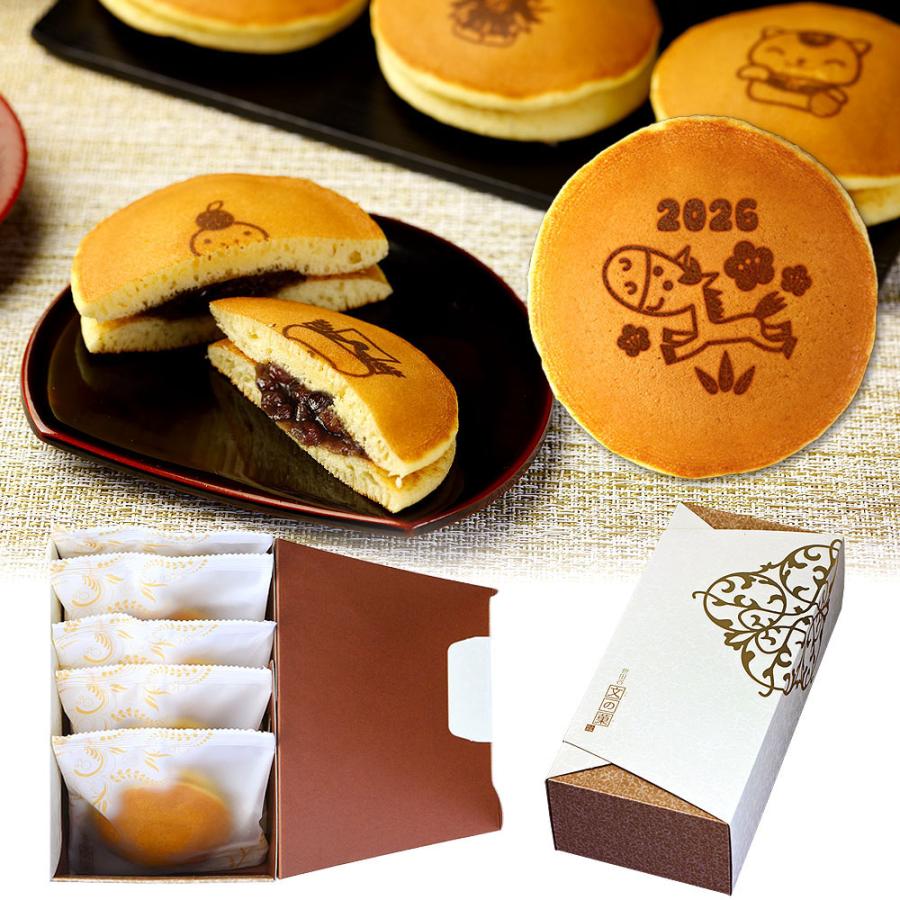 21年 お正月 イラスト入り どら焼き 5個 小豆餡 化粧箱入り 干支 丑 イラスト どらやき 和菓子 お菓子 新年 プレゼント 年賀 御祝 ギフト 贈り物 贈答 土産 Fd 86 日本ロイヤルガストロ倶楽部 通販 Yahoo ショッピング